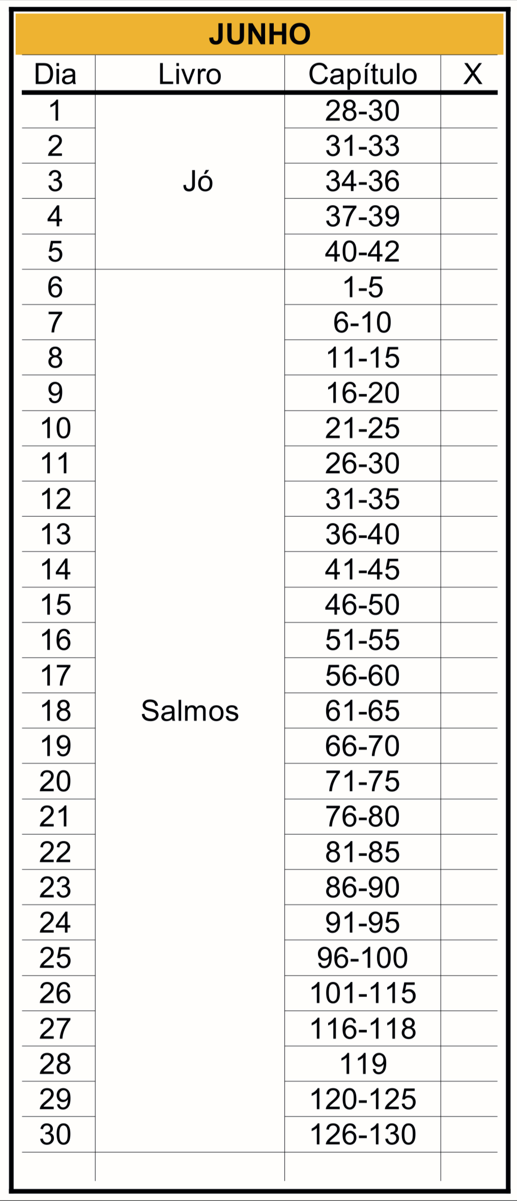 Acompanhe o cronograma de leitura bíblica anual da sua igreja.