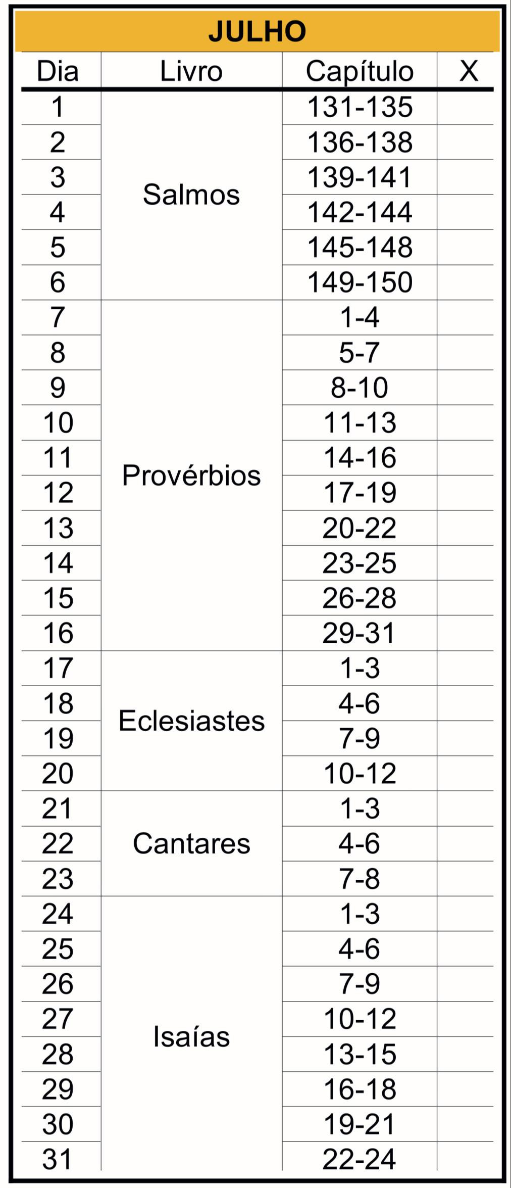Acompanhe o cronograma de leitura bíblica anual da sua igreja.