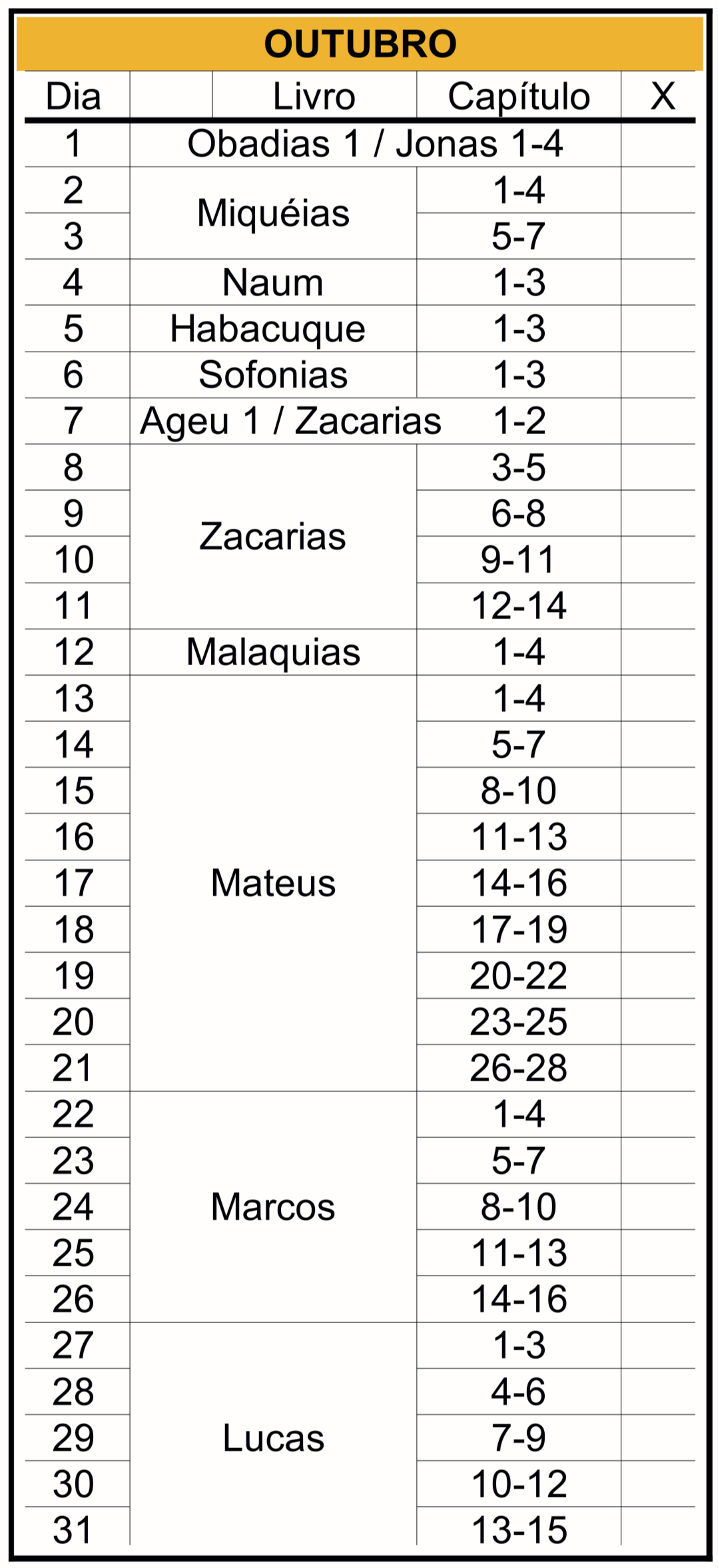 Acompanhe o cronograma de leitura bíblica anual da sua igreja.
